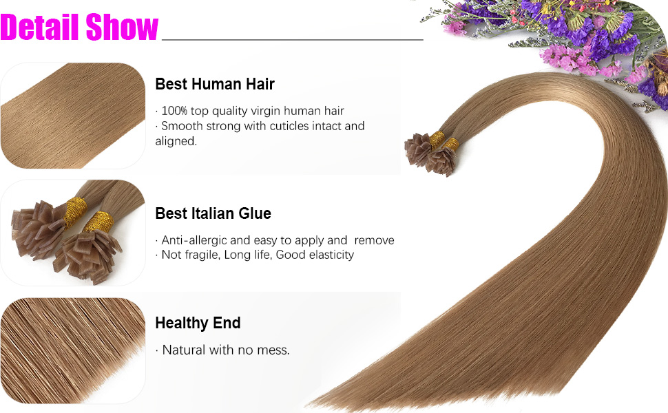 The hair tips are neat and strong, which guarantee the hair extensions shedding free
