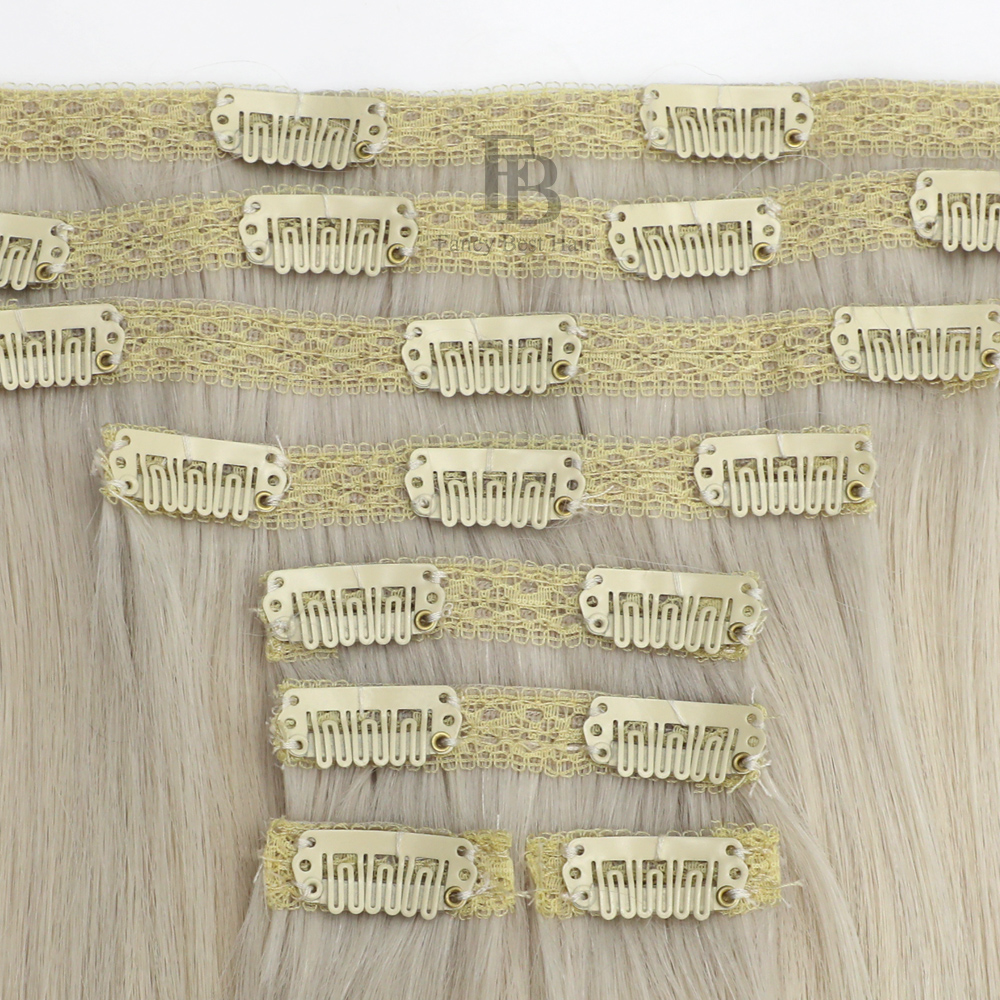 FB Human Hair Clip in Extensions are made from the finest 100% Remy human hair,so they can be curled, straightened, cut and styled, shampooed and colored, just like your own hair. More importantly,FB Human Hair Clip in Extensions can blend with your own hair seamlessly and naturally because of our multi-tonal adapting coloring technology, even if it is a slightly different color.