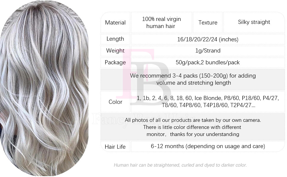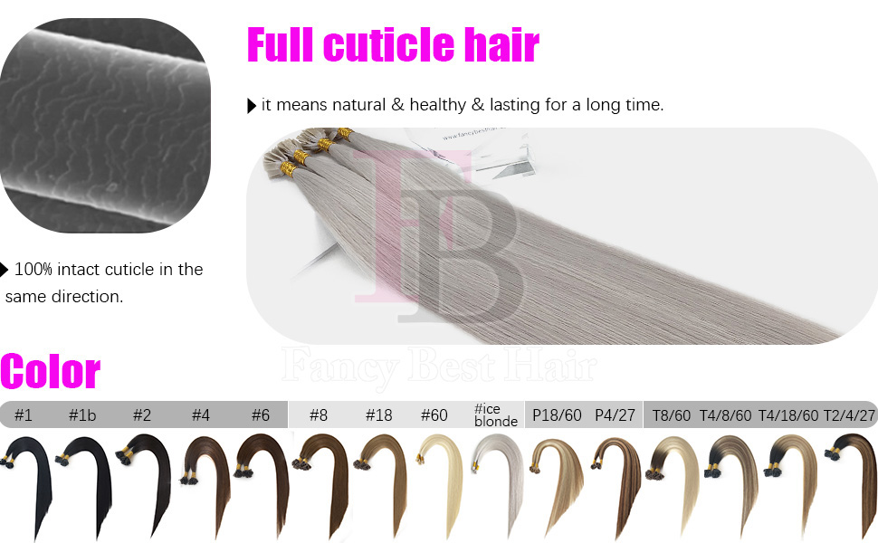 Hello everyone,welcome to FB hair extensions. FB Flat tip hair is made from the finest 100% Remy human hair,so they can be curled, straightened, cut and styled, shampooed and colored, just like your own hair. More importantly,FB Flat tip hair can blend with your own hair seamlessly and naturally because of our multi-tonal adapting coloring technology, even if it is a slightly different color.