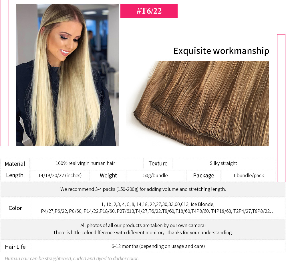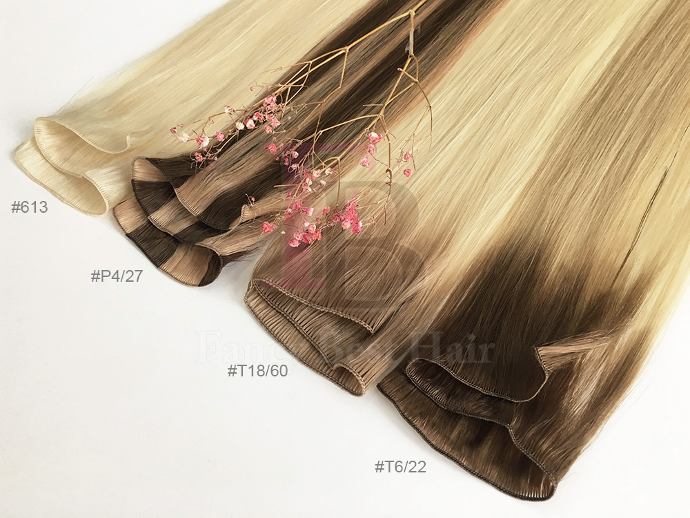 Hand Tied Weft Extensions are the highest quality, 100% pure human hair.Fancy Best Hand Tied Wefts are sewn together by hand, making the weft portion of the hair much thinner than Machine Tied Wefts. When adhered to the natural hair, Hand Tied Wefts lay flat against your scalp to provide natural look. Hand Tied Wefts can be sewn-in or braided-in by a licensed cosmetologist.