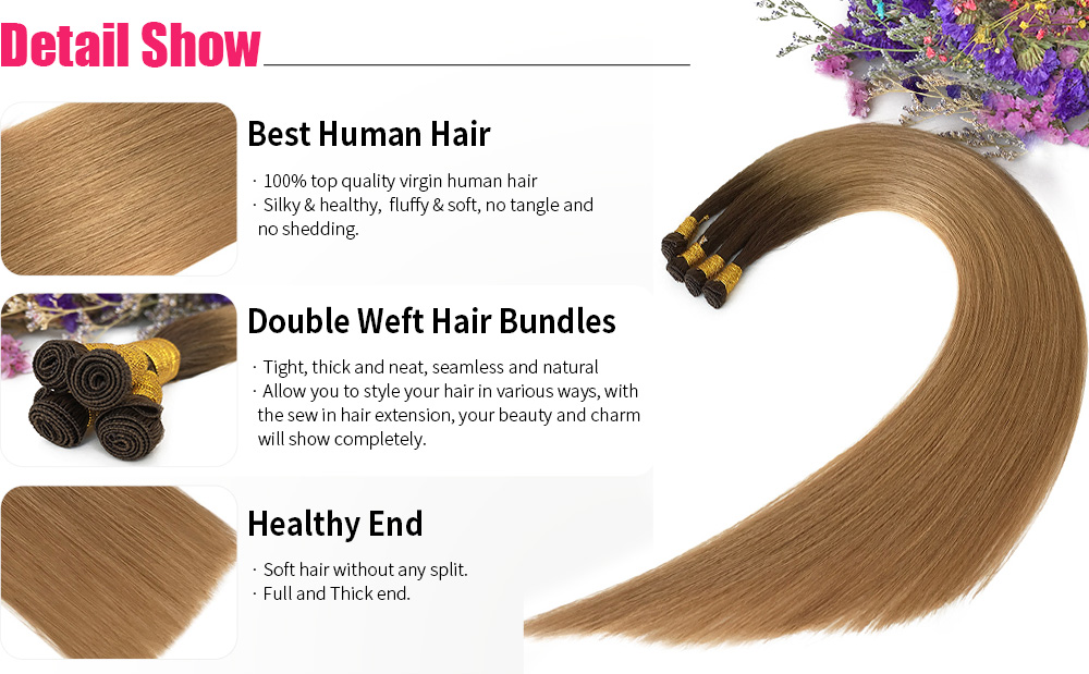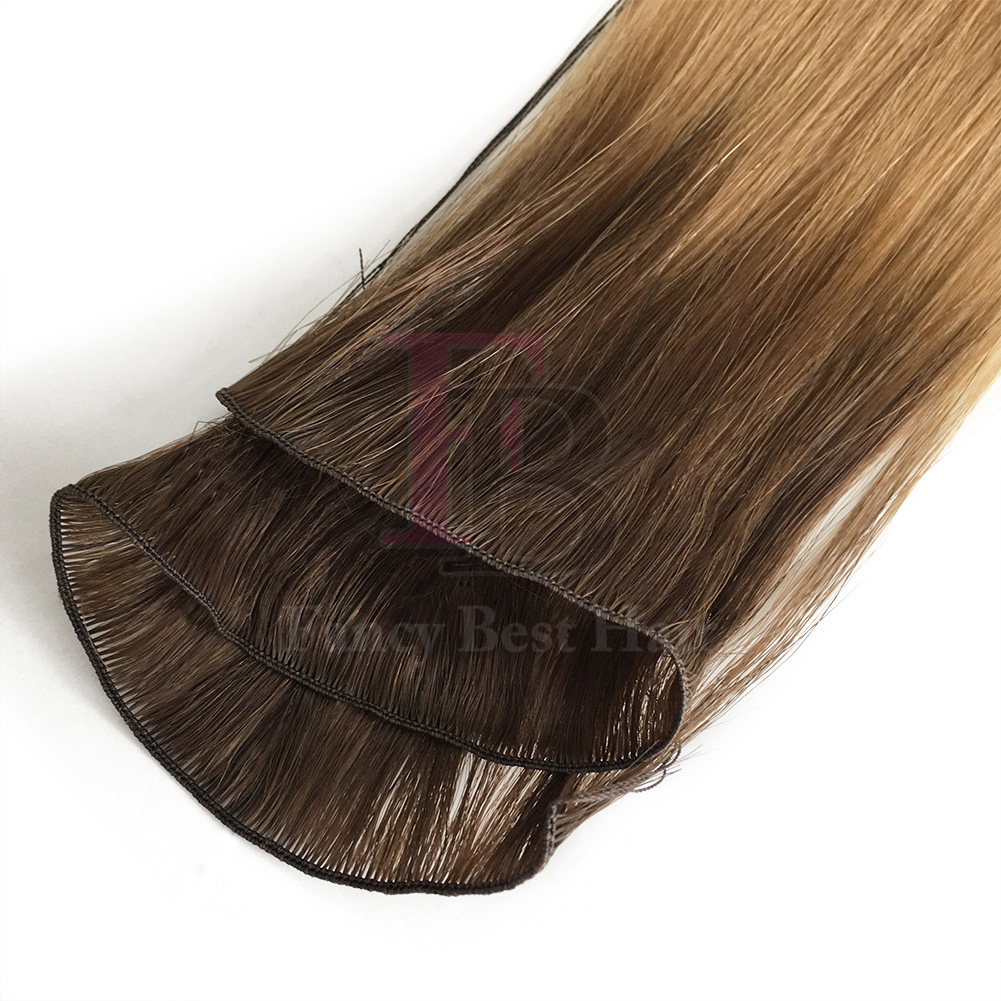 Hand Tied Weft Extensions are the highest quality, 100% pure human hair.Fancy Best Hand Tied Wefts are sewn together by hand, making the weft portion of the hair much thinner than Machine Tied Wefts. When adhered to the natural hair, Hand Tied Wefts lay flat against your scalp to provide natural look. Hand Tied Wefts can be sewn-in or braided-in by a licensed cosmetologist.