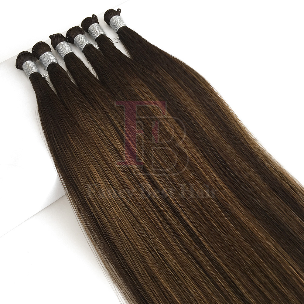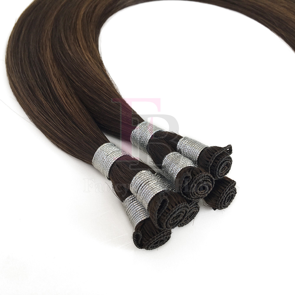 Hand Tied Weft Extensions are the highest quality, 100% pure human hair.Fancy Best Hand Tied Wefts are sewn together by hand, making the weft portion of the hair much thinner than Machine Tied Wefts. When adhered to the natural hair, Hand Tied Wefts lay flat against your scalp to provide natural look. Hand Tied Wefts can be sewn-in or braided-in by a licensed cosmetologist.