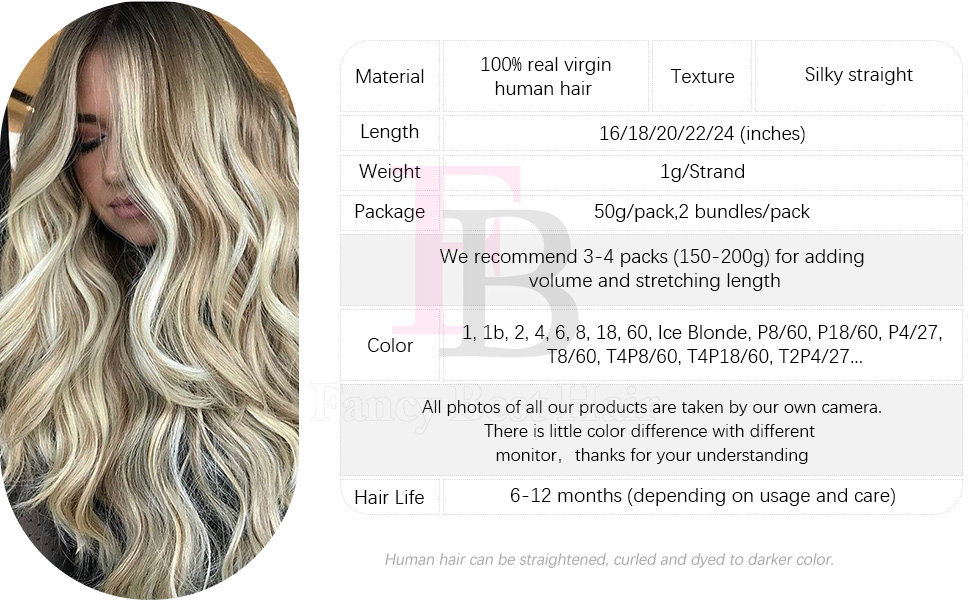 Hello everyone,welcome to FB hair extensions. FB Flat tip hair is made from the finest 100% Remy human hair,so they can be curled, straightened, cut and styled, shampooed and colored, just like your own hair. More importantly,FB Flat tip hair can blend with your own hair seamlessly and naturally because of our multi-tonal adapting coloring technology, even if it is a slightly different color.